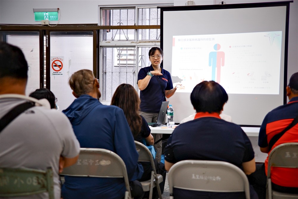 在討論環節中,有學員問我:「如果敷料、紗布都用完了,還能怎麼照護傷口?」這個問題看似只是物資的困境,本質上卻是一題關於「災難思維」的判斷題。我帶著學員一起回到核心原則:「減少感染風險、避免再次汙染、並持續觀察感染徵象。」傷口刷洗後,從現場找到相對乾淨的布料暫時覆蓋,低風險的擦傷甚至優碘塗抹使其乾燥癒合即可。透過這樣的討論,我不只看到學員開始跳脫「有標準物品才能處置」的框架,也再次提醒自己——教學是一面鏡子,讓我不斷檢視自己的思考是否足夠扎實,也讓我對災難護理有了更完整的理解。