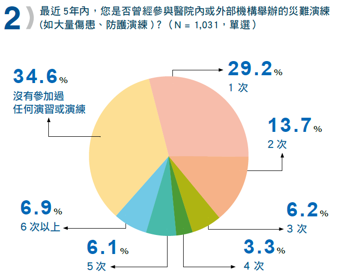 第二題是最近5 年內,曾經參與醫院內或外部機構舉辦的災難演練(如大量傷患、防護演練)?