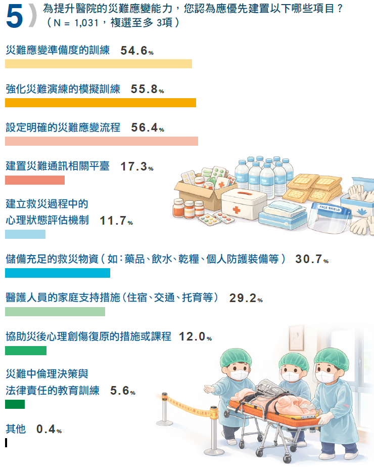 第五題為提升醫院的災難應變能力,您認為應優先建置以下哪些項目?