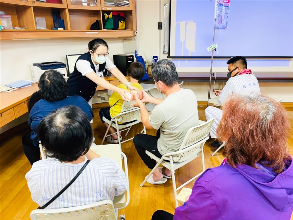 彭宣燕為花蓮慈院合七病房住院病人進行傷口照護衛教。圖/彭宣燕提供