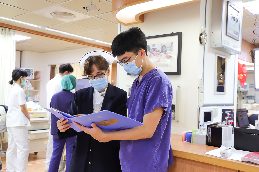 於是我定下心來,在RCC 的新人適應期間,當我遇到不熟悉的治療或技術時,學長姊耐心的指導我,手把手的指導我技術,鼓勵我「不會的不懂的一定要問清楚!」護理長常對我說:「新人最大的權力就是不會就問,不用覺得不好意思,不懂就讀書一起討論……」鼓勵我遇到問題時也要勇敢的向團隊以及學長姊們詢問,也會在晨會中請學長姊們要好好照顧我,也安排我參加加護病房訓練班。我逐漸跟上步調,經手照護的病人也恢復健康,讓我的自信心提高,壓力相對變小了。
