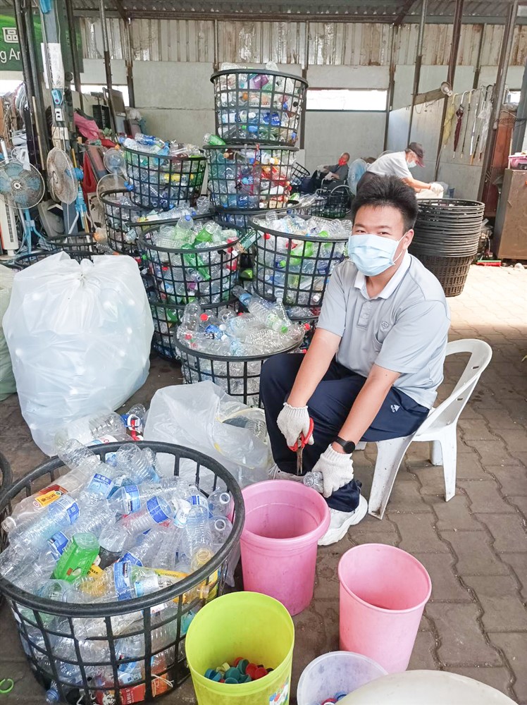 大學一年級的勞作教育活動其中之一是去學校附近的慈濟環保站學習資源回收的分類方式,那一次參訪後,我開始對環保志工產生了興趣,因為參觀結束的時候,我看到還有堆積如山的回收等待分類,心裡就覺得沒有成就感,所以從那之後,每到假日我有空時就會去環保站幫忙做回收分類,也因此在環保站認識了志工師姑及師伯們,他們都很熱情。師姑常常看到我去環保站幫忙,甚至連續假期沒有回臺中時還一大早到去環保站分類回收,師姑會特別做早餐帶來環保站給我吃,讓我在連續假期也有家的感覺。