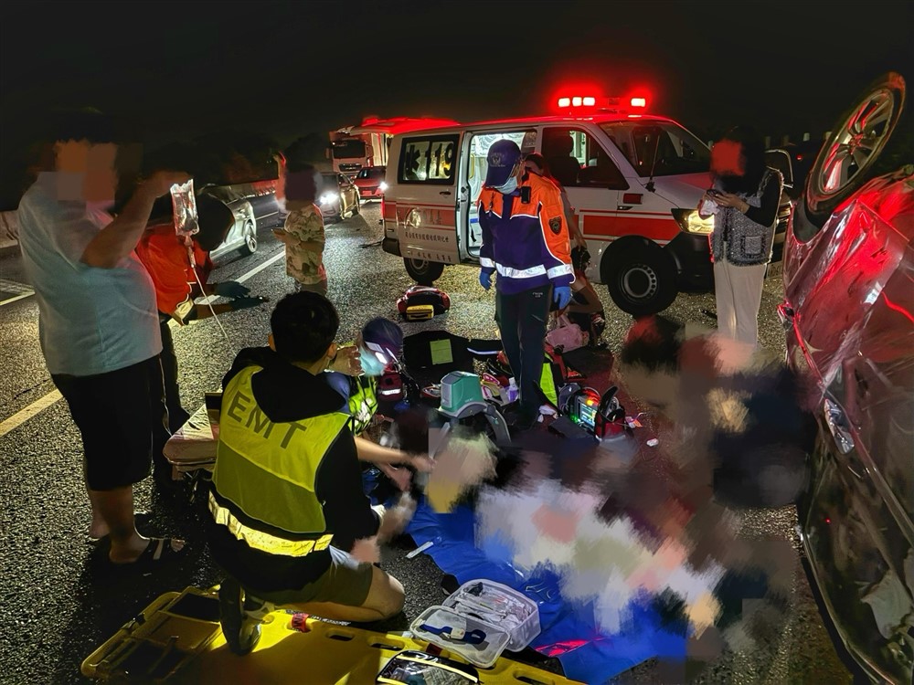 2023 年12 月11 日下班,而且上完院內課程後和弟弟外科加護病房護理師林承濬一起開車回家,行經國道一號高速公路民雄路段,發現前方車輛回堵,向前查看得知是發生嚴重車禍,當下瞬間急診魂爆發,立刻與弟弟下車救人,穿上反光背心,帶上車內救護包,往前跑過去,映入眼簾的是一輛翻覆的自小客車,有一位民眾受困,另有四位已自行脫困乘客在車道等待救護。