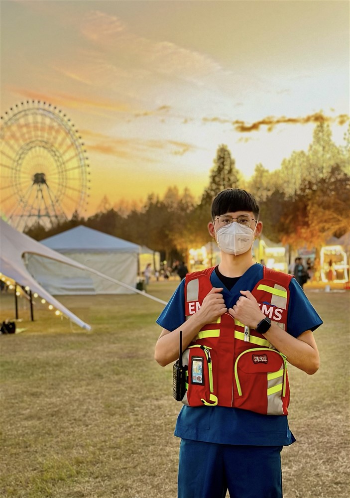 2015 年國中畢業後就近就讀敏惠醫專,在學期間對救護產生濃厚興趣,考取了救護技術員證照,並參加救護志工服務。2021 年畢業經過國考考取護理師證照後,為了讓臨床服務更加順利,馬上申請了消防替代役完成兵役,短短半年的分隊服務,也累積許多到院前救護、災害搶救、緊急應變等寶貴經驗。2021 年10 月退役馬上至大林慈濟醫院報到,開始我的急診護理之路。在急診,做中學的訓練過程非常紮實,短時間就讓我的各項臨床技能達標。