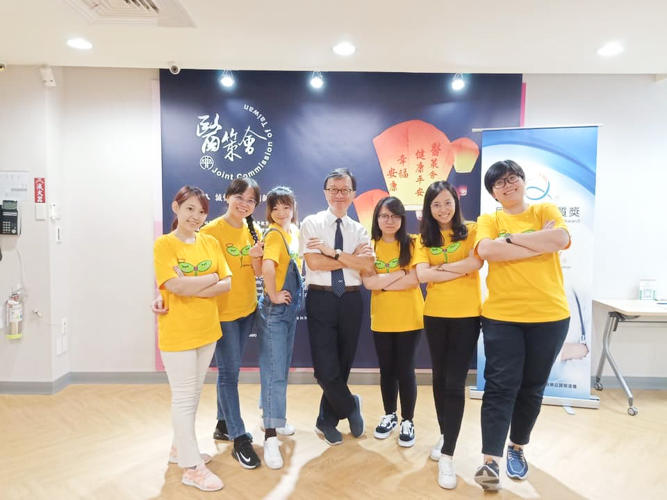 帶隊同仁參與醫策會品質競賽,賽前在李毅醫祕(右一)指導下,周英芳(右二)和團隊進行演練與討論。