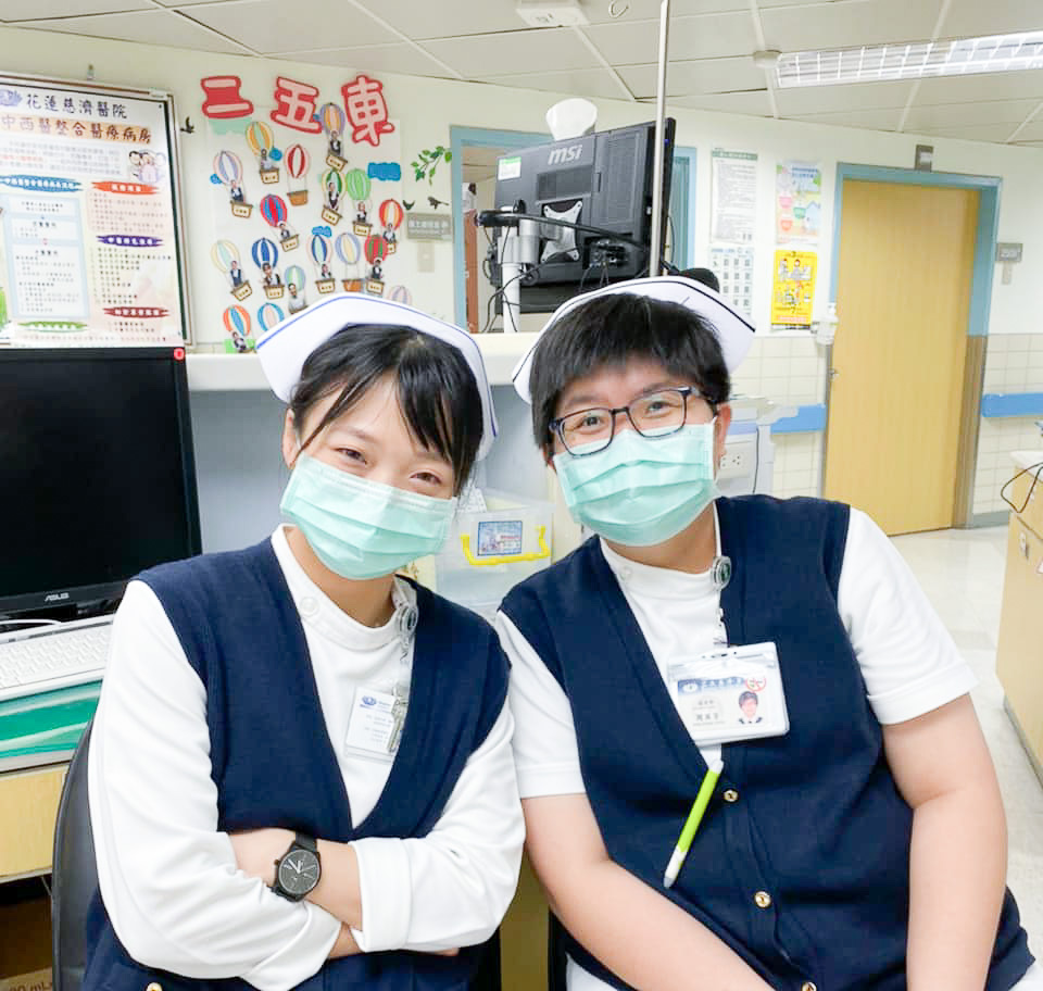 2016 年碩士班畢業前夕,正思量著未來要不要轉換跑道走專師,陸家宜護理長找她商量,能不能接下懸缺半年的急診副護職務,等醫院評鑑過後再去想去的地方。「想到急診益我良多,護理部、慈大老師們也是。我應該要回饋養大我的單位,便答應下來。」接下的發展,從兩年急診副護、兩年急診後送病房護理長、再到兩年新冠肺炎專責病房督導,一連串的職務歷練等著她,竟也如當初獨自扛著行李、冒著風雨來到東臺灣就職一般,負重前行沒有回頭路了。