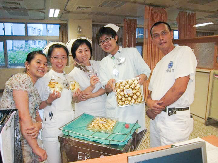 原以為撐個兩三年、等約滿就差不多回南部了,然而接連幾度急診啟動大量傷患機制,例如陸客團翻車、韓國團遊覽車翻覆事故、校園群聚感染急性腸胃炎事件、以及後來的0206 花蓮大地震等,都有她當班參與,臨床急診護理的能力不斷被開發,成長得很快;又很喜歡急診團結一心的工作氛圍,再加上花四年念碩士,忙得不亦樂乎,根本走不開!