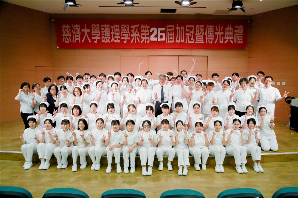 雖然花蓮遇到0403 大地震和0423 群震,慈濟大學護理系加冠暨傳光典禮如期於4月26 日舉行,這群即將在暑假踏入臨床實習的護理系二年級55 位受冠生,面對各種挑戰,毫不動搖。