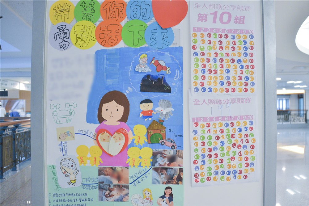 休息時間進行海報投票評選,最終由PICU 的護理同仁以「帶著你的愛,勇敢活下來」(右圖)獲頒最佳人氣獎。
