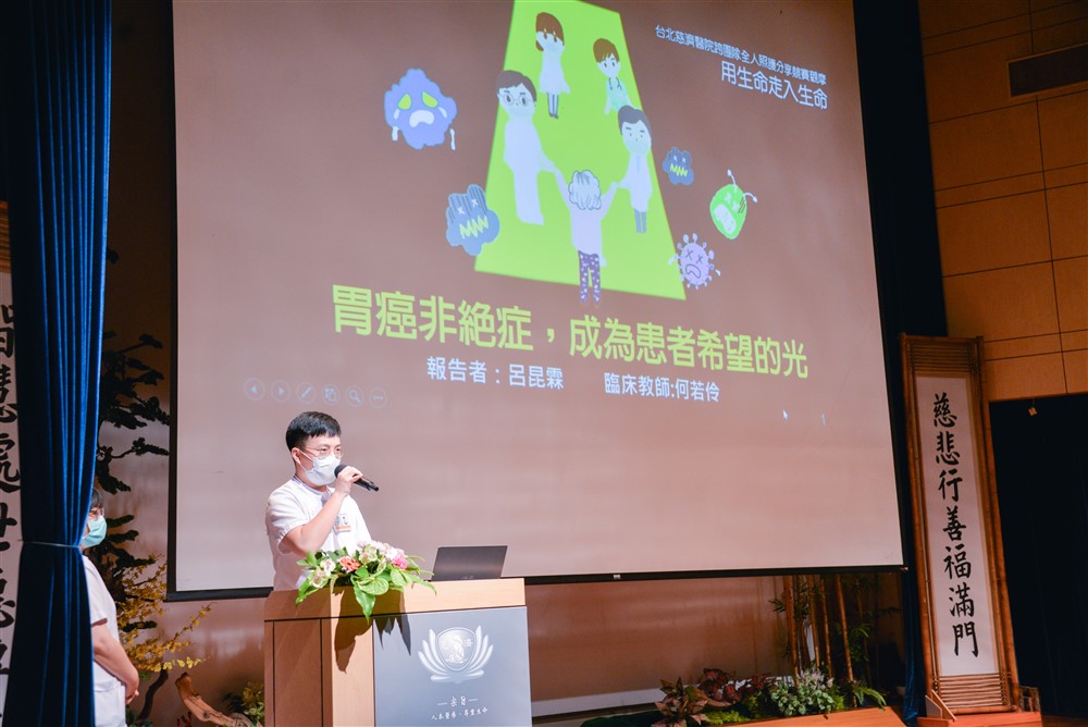 此次擔任評審之一的賴清安師兄前天甫出院,今天親自蒞臨現場替參賽的醫護人員加油打氣,他言及:「在醫療體系展現人文照護實屬不易,但台北慈院做到了!這12 組的參賽者都是慈濟人文的典範。」林智慧師姊也代表上臺分享:「各組參賽者讓我了解到如何付出、面對離別,白衣大士們聞聲救苦,對於身心靈的苦痛,總是用全身的愛去護衛,著實感動萬分。」