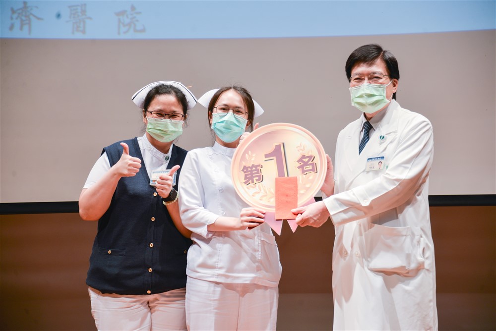 經過整個上午精彩的分享後,評選出前三名、佳作三名、潛力獎6 名,而PICU 的護理同仁以「帶著你的愛,勇敢活下來」獲頒最佳人氣獎。對於今日的活動,趙院長歡喜勉勵:「每組參賽的學員都在短時間內讓我感受到他們對病人的愛,感恩護理部對他們的栽培,也歡迎更多的護理師能夠加入台北慈濟醫院這個大家庭。」