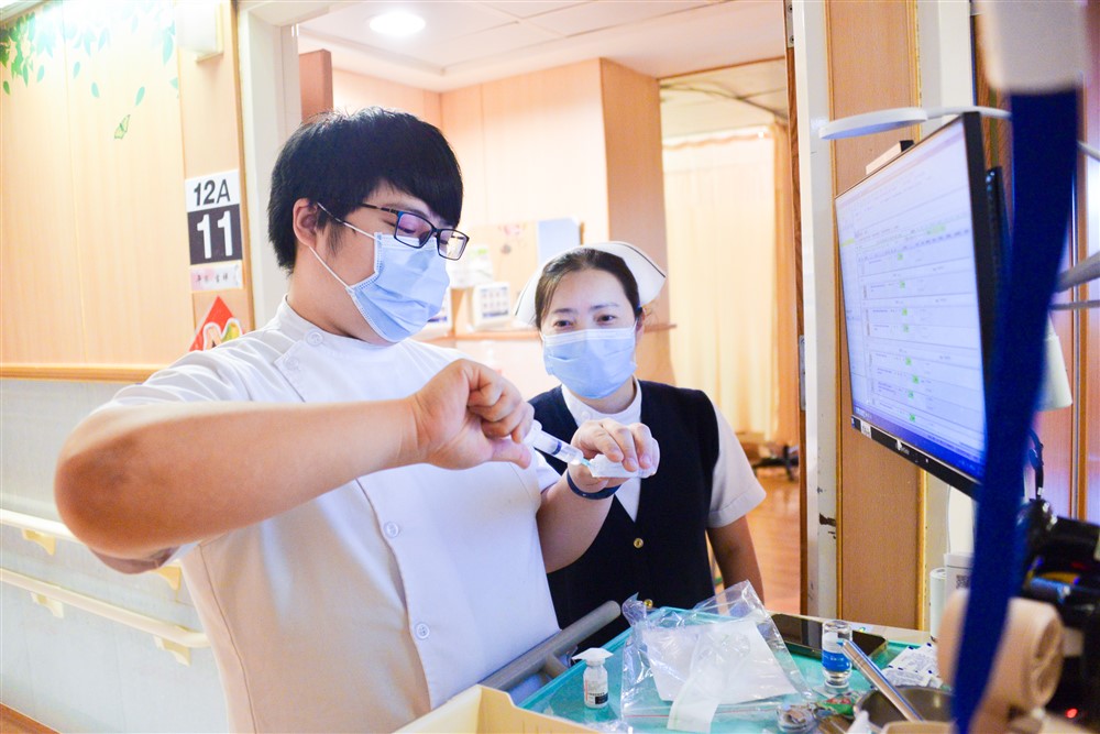 魁恩很活潑,是個非常好帶的孩子,按照我們的腳步在做,不挑工作、不挑病人,也不怕吃苦,只要告訴他要做什麼,他就能努力去完成並勇於挑戰,他說:「我想快點上手、快點獨立,這樣就不會造成單位排班的困擾。」能想到這一點,他真的是一位貼心的孩子。